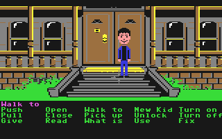 A screenshot from the Commodore 64 version of Maniac Mansion